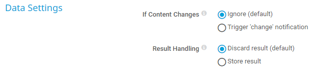 Trigger 'change' notification: Send an internal message that indicates a change. In combination with a change trigger, you can use this to trigger a notification if a change occurs.